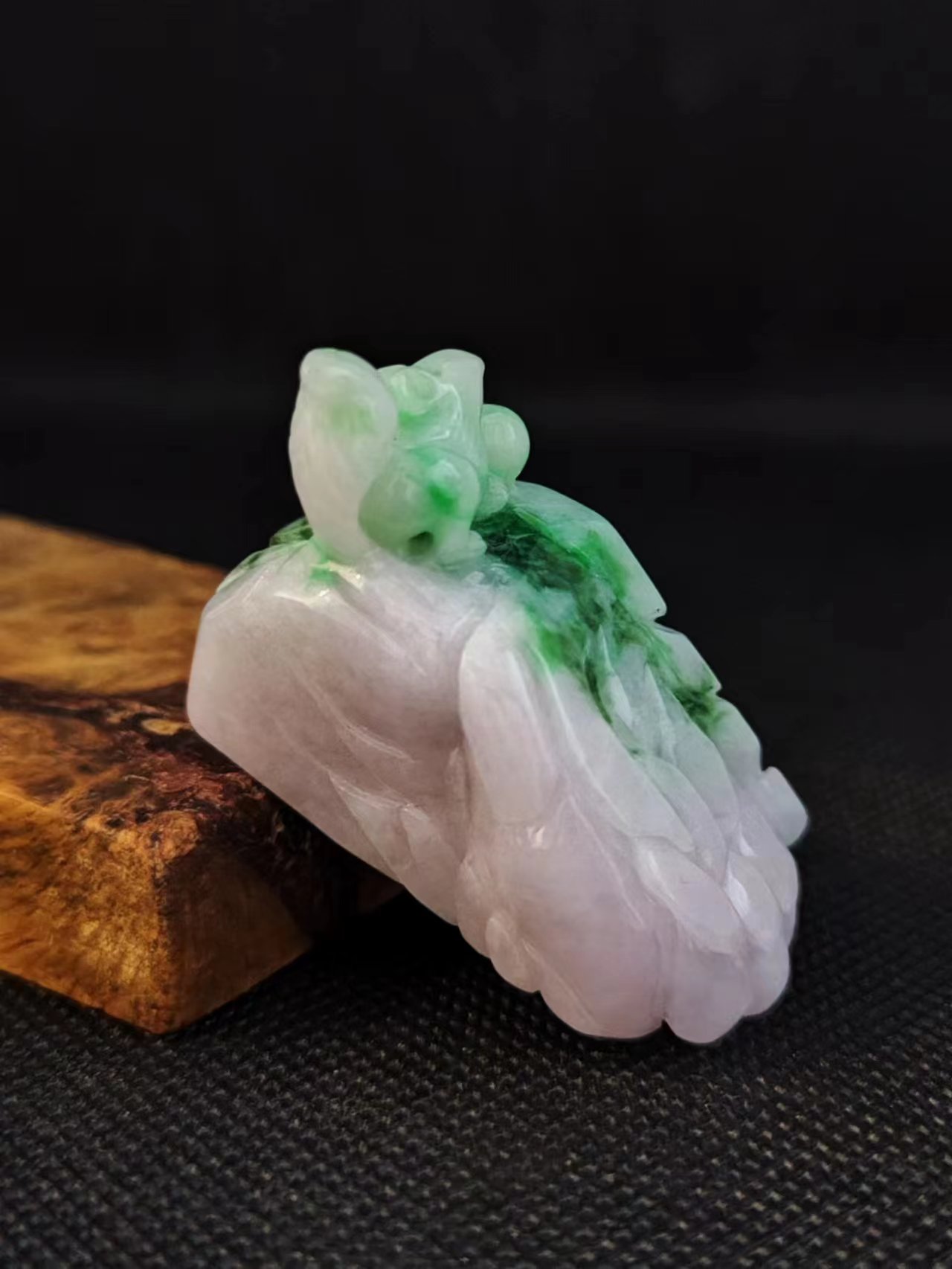 天然緬甸翡翠A貨 石頭上的小松鼠擺件
